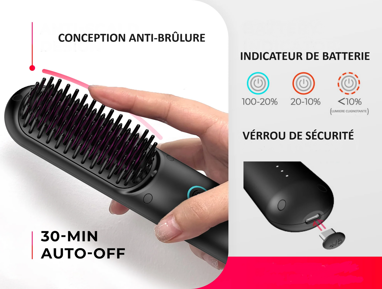 Sécurité Maximale :Doté d'une fonction d'arrêt automatique après un certain laps de temps, ce peigne offre une tranquillité d'esprit supplémentaire. Plus de soucis d'oubli !